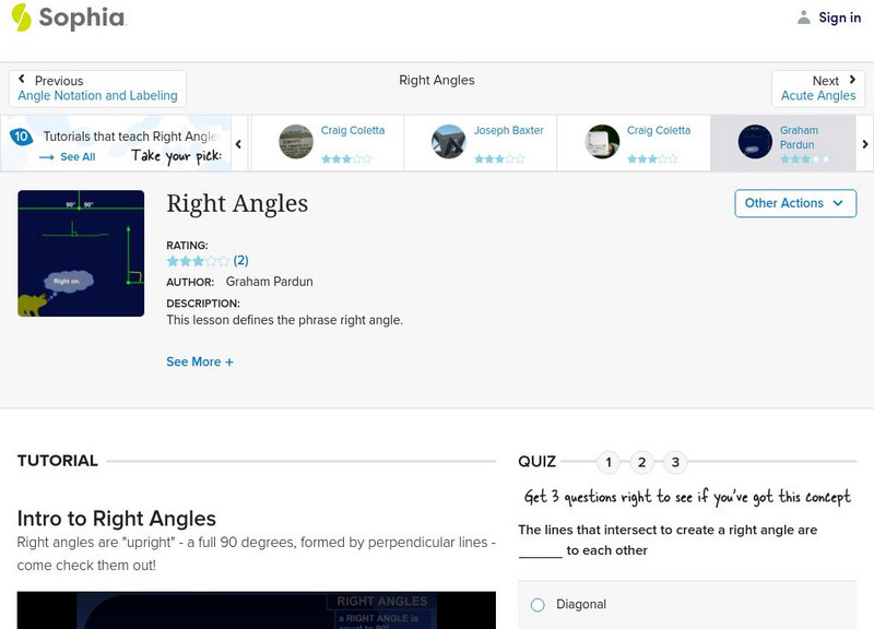 Right angles are defined in this video lesson. Take quiz to assess learning. [1:32]
