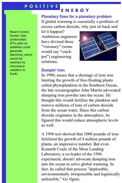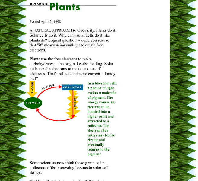 An understandable description of modern research that is currently being conducted to develop a more efficient photovoltaic (solar energy) cell. It also contains links to other pages on renewable energy sources.