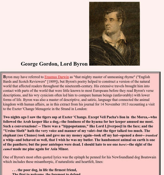 Familiarize yourself with the life and works of Lord Byron. This source contains a quick fact sheet, a short biography, and links to related articles, collection items, works, and teacher resources.