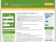 Students talk with a partner. In this listening lesson, students play a favorite colors listening games, review a checklist for active listening and practice active listening with a partner.