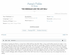 Take the bull by its horns with an audio retelling of Aesop's fable "The Hart in the Ox-Stall." Part of a larger set, the resource contains an audiobook recording and text passage. After listening to the story, class members then...