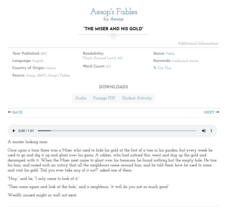 Why have precious belongings if you're not using them? Aesop's fable "The Miser and His Gold" includes an audio recording, text version, and writing activity about possible alternatives for the protagonist based on the moral of the story.