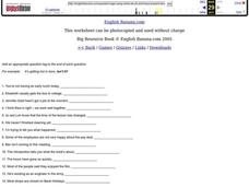 In this question tag worksheet, middle schoolers complete 8 sentences that need question tags and write dialogue using the instructions provided.