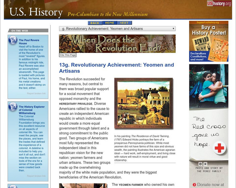 U.s. History: Revolutionary Achievement: Yeomen and Artisans