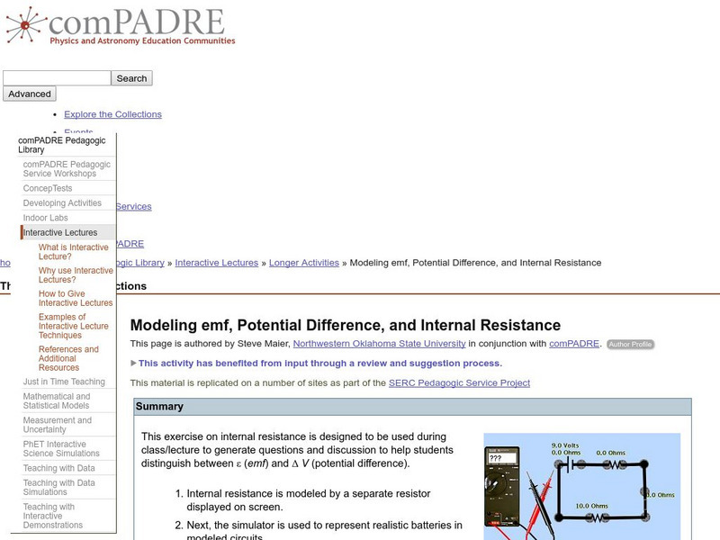Interactive lecture discusses internal resistance which provides help to students in developing an accurate model.