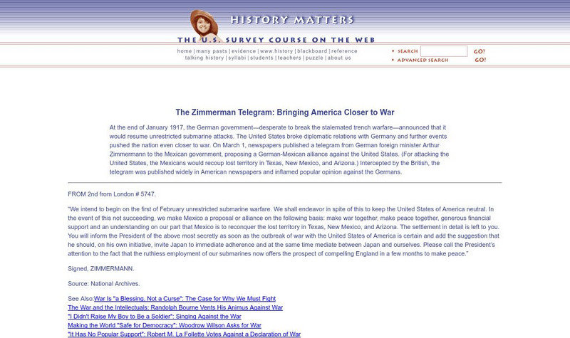 History Matters: The Zimmerman Telegram Bringing America Closer to War