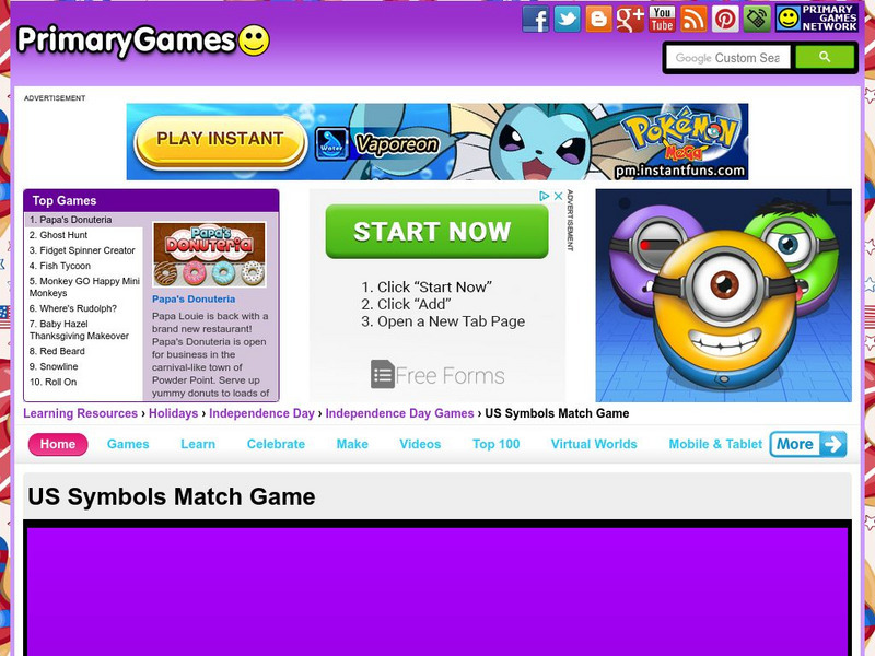 Match important U.S. symbols, includes Statue of Liberty, flag, and monuments.
