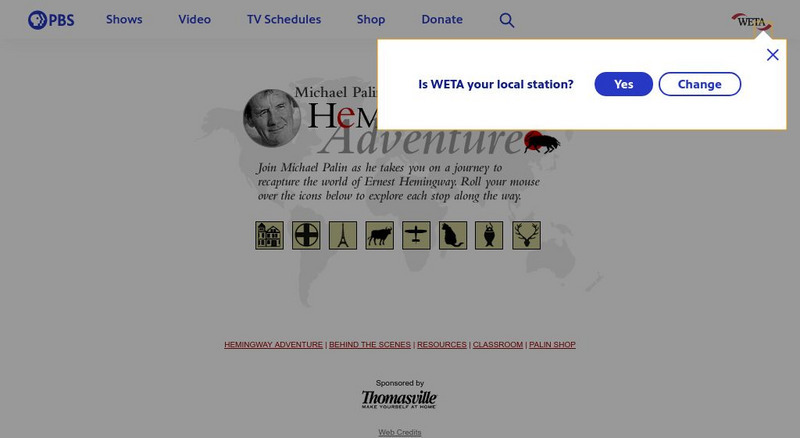 "Join Michael Palin as he takes you on a journey to recapture the world of Ernest Hemingway." Contains a biography of Hemingway including a number of pictures of him and the various places he traveled throughout his life. In addition to...