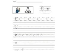 In this letter Cc worksheet, students study the stroke patterns for the uppercase and lowercase letter Cc. Students trace and print both letters several times. Students then trace and print the word cold.