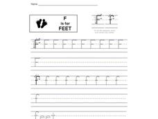 In this letter Ff worksheet, students study the stroke patterns for the uppercase and lowercase letter Ff. Students trace and print both letters several times. Students then trace and print the word feet.
