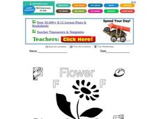For this alphabet recognition worksheet, learners read 15 words and then circle the words that begin with the letter F. Next, students look at 4 different pictures and circle and color the pictures that start with the letter F.