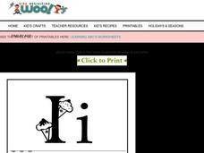 In this letter i worksheet, students study a picture flashcard. Students use the flashcard for mastery of the letter sound with both the letter and a corresponding picture.