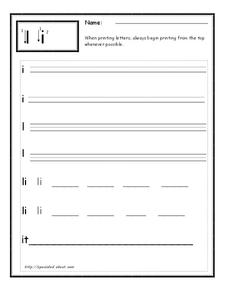 In this letter Ii printing practice worksheet, learners trace the uppercase and lowercase letters. Students then practice printing the uppercase and lowercase letters on the lines provided.