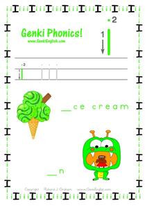 For this letter i worksheet, 1st graders study the mini arrows to learn the stroke pattern for the lowercase letter i. Students then fill in the missing letter i for the words ice cream and in.
