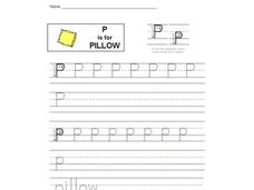 In this printing Pp practice worksheet, students view the animation showing the correct way to form the upper case P and lower case p, trace, and print the letters and the word pillow. Students form thirty letters.