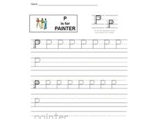 In this printing Pp practice worksheet, students view the animation showing the correct way to form the upper case P and lower case p, trace, and print the letters and the word painter. Students form thirty letters.
