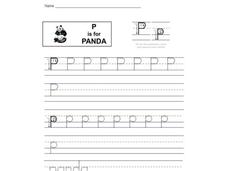 In this printing Pp practice worksheet, students view the animation showing the correct way to form the upper case P and lower case p, trace, and print the letters and the word panda. Students form thirty letters.