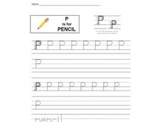 In this printing worksheet, students master the upper and lower case letter "p." Students trace one line of each letter and complete one line of independent practice on the dotted lines provided.
