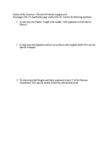 In this Mexican Revolution learning exercise, high schoolers read assigned textbook pages about the war and then respond to 3 short answer questions related to Zapata's death.