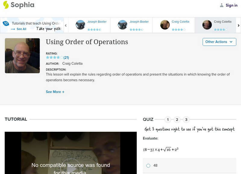 In this lesson, you will learn the basics of ordering operations. Students watch a video tutorial and then take an online quiz.