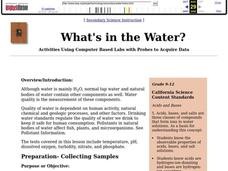 Learners comprehend the four parameters of water quality. They perform tests for salinity, dissolved oxygen, pH and clarity or turbidity. Students comprehend why scientists and environmental managers monitor water uality and aquatic...