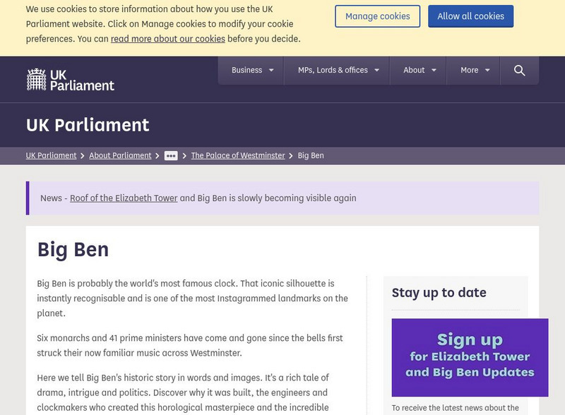The name Big Ben is often used to describe the tower, the clock and the bell but the name was first given to the Great Bell. This resource gives users the chance to build a virtual Big Ben, go behind the scenes and find out the facts and...