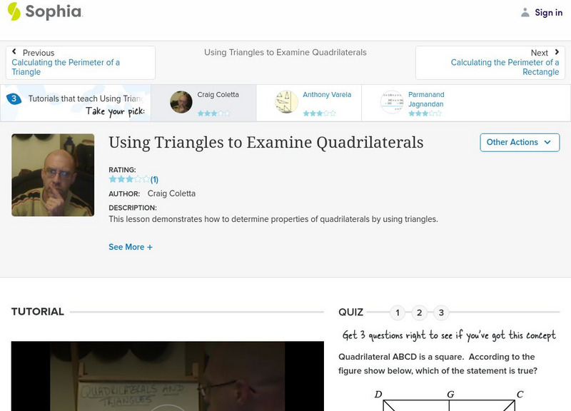 Sophia: Using Triangles to Examine Quadrilaterals: Lesson 2