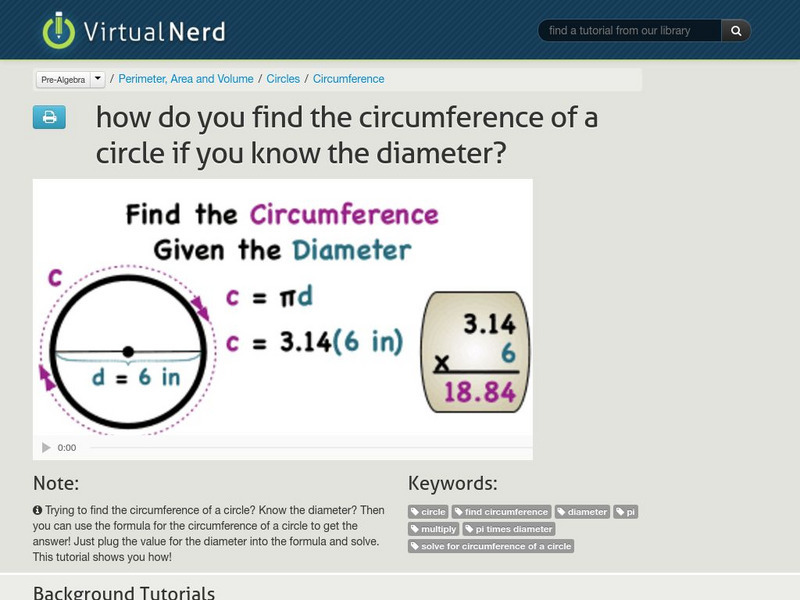 Virtual Nerd: Find the Circumference of a Circle if You Know the Diameter