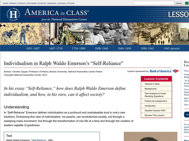 National Humanities Center: America in Class: Individualism in Ralph Waldo Emerson's "Self Reliance"