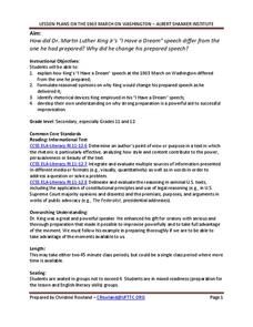 As part of their study of the 1963 March on Washington, class members do a side-by-side comparison of the original text of Martin Luther King's "I Have a Dream Speech" with a transcript of the speech he delivered. The take away from the...