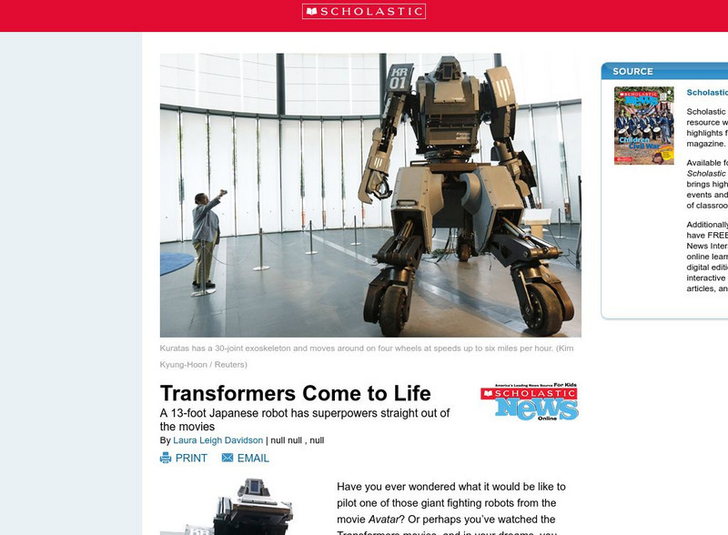 Students examine the role of robots and science in our everyday lives. They discuss films with robots in them, read an online article and answer discussion questions, and in small groups design and illustrate a robot.