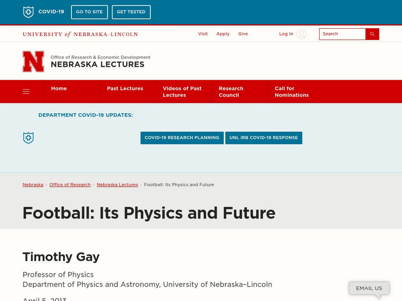 Physics video lecture (1:16:39) that uses football to illustrate physics principles.
