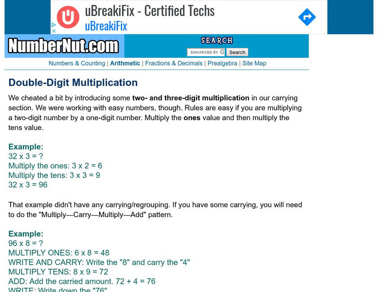 Number Nut: Multiplication: Double Digit Multiplication