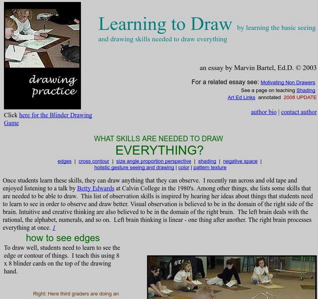 This site from the University of Evansville is a great place for the aspiring artist to visit. Receive free professional advice and tips on basic drawing techniques. The site focuses on perspective drawing and shading.