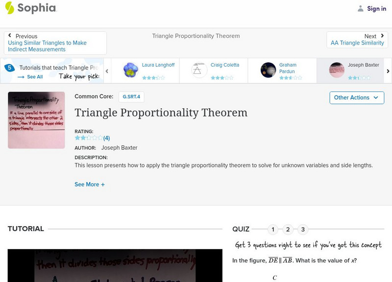 Sophia: Triangle Proportionality Theorem: Lesson 3