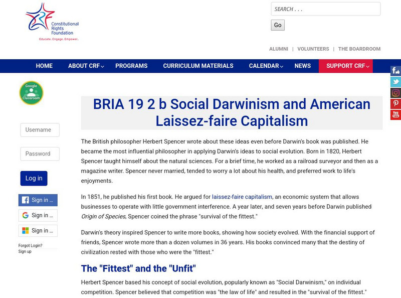 Constitutional Rights Foundation: Social Darwinism and American Laissez Faire Capitalism