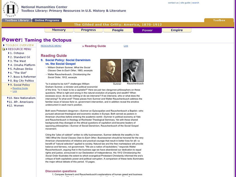 National Humanities Center: Toolbox Library: Taming the Octopus: Social Policy: Social Darwinism vs. Social Gospel