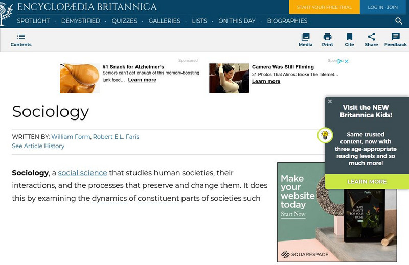 A very detailed look at the development of the field of sociology. Looks at its historical roots, the earliest sociologists, and explains major theories that it was based on, and theories and schools of thought that evolved from those....
