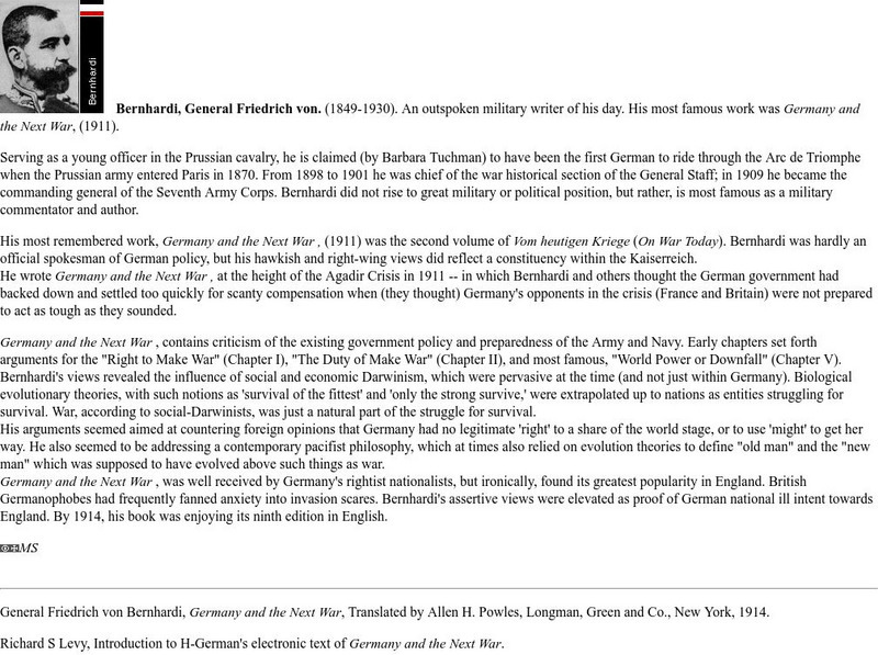Byu: Wwi Document Archive: General Friedrich Von Bernhardi