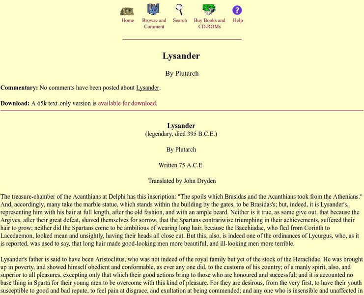 Mit: Internet Classics Archive: Lysander by Plutarch