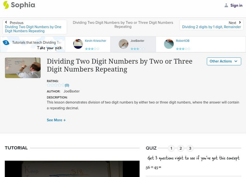 Sophia: Dividing 2 Digit Numbers by 2 or 3 Digit Numbers Repeating: Lesson 5