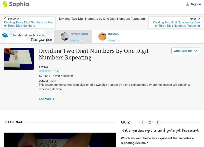 Sophia: Dividing Two Digit Numbers by One Digit Numbers Repeating: Lesson 1