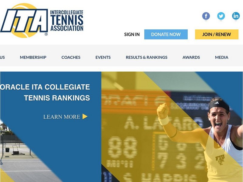 A comprehensive collection of college tennis information on the Internet, including rankings, results, news stories, and event schedules. Intercollegiate Tennis Association promotes and regulates tennis in different colleges across the...