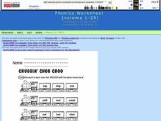 In these eight recognizing the phonetic sounds in picture words worksheet, learners observe pictures of farm animals and color the ones that have the specified /c/ , /d/, /p/, /h/, /m/, /g/, /sh/, or /ch/ sounds. There are five pictures...