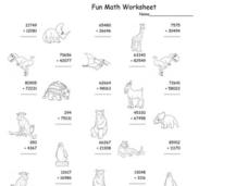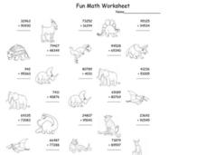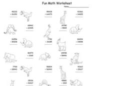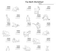 In this multiple digit addition practice instructional activity, learners sharpen their math skills as they solve 15 problems that require them to add 5-digit numbers to 5-digit numbers.