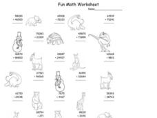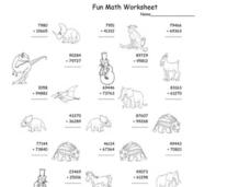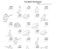 In this addition activity, students add four and five digit numbers together. Students complete 15 addition problems with and without regrouping.