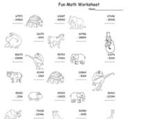 In this subtraction activity, students subtract five digit numbers from each other. Students complete 15 subtraction problems.