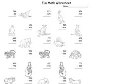 Budding Mathematicians hone their math skills as they solve 80 problems that require them to subtract 1, 2, or 3-digit numbers from 3-digit numbers. Borrowing is required to complete every problem. This worksheet may be best for more...
