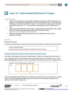 Repeated addition also works for multiplying integers. The lesson plan has the class play the integer game again, but has one card multiplied several times. Scholars write the multiplication expression and the addition expression that...