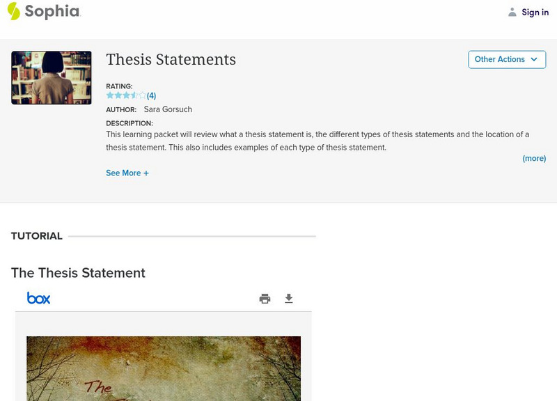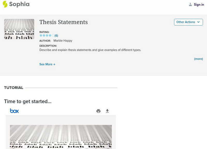 This tutorial focuses on thesis statements; it defines thesis including purpose and location, lists 3 types: analytical, expository, and argumentative and defines and provides examples of each. It lists 4 question to ask to determine if...